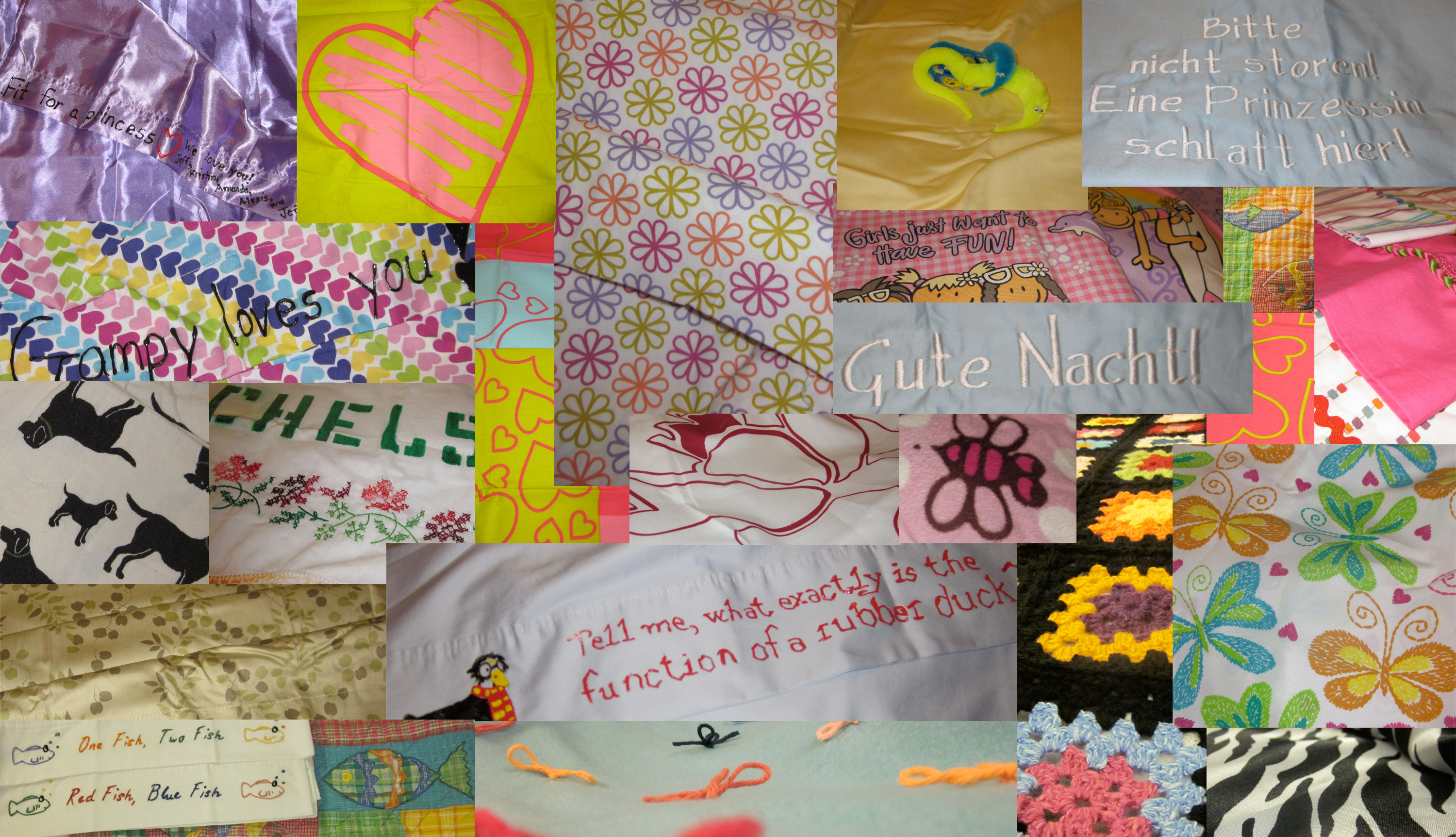 My mom has made the 3000-mile trek from her home in California to our Boston-based hospital twice since September. The second time she came she noticed that I bring my own pillowcases from home during each stay. A combination of allergies and homesickness inspired this tradition. In order to keep my sanity, I make sure that my pillowcases are the most vibrant and happy ones that I can find. Shortly after that visit, my mom put a call out to the long list of family and friends who have been following our story and this Thanksgiving, we celebrated with the blessings of nearly two dozen different families who sent the most vibrant and unique pillowcases that they could find. In addition, my aunt sent a beautiful ribbon quilt and a family friend crocheted a bright and happy blanket.