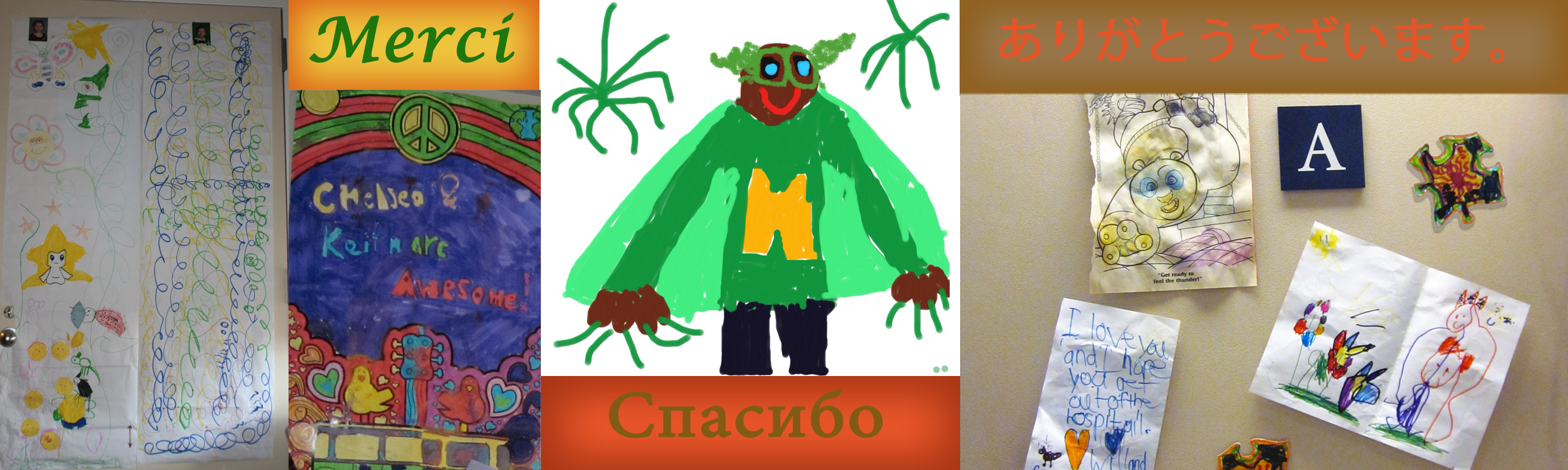 Thank you to all my younger friends who work endlessly on the artwork that adorns my hospital walls. Thank you for the e-mailed iPad drawings and the goodnight videos. Thank you for my school pictures and the drawings which constitute my wallpaper. I get questions and admiration all day. And each little glance from the corner of my eye brings a smile to my face.